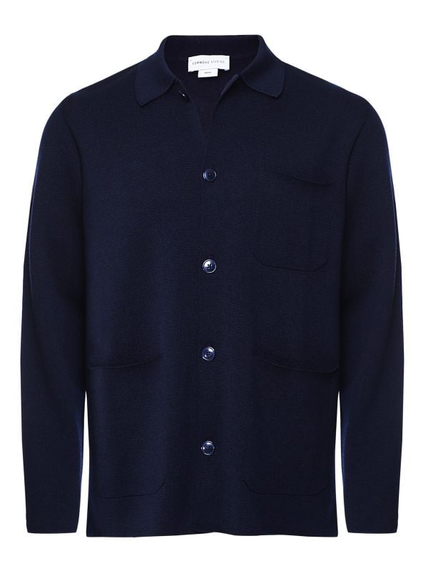 Introduce relaxed knitwear into your casual wardrobe with the Edmmond Studios knitted jacket. Lovingly crafted in fine gauge merino wool, the cardigan showcases a lightweight and super soft handle. Featuring a rounded collar, ribbed trims and button-through fastening, whilst front patch pockets add handy functionality.