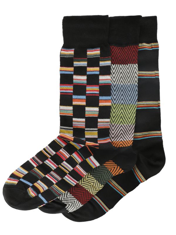 Add instant personality to your everyday rotation with the Paul Smith mixed pattern socks, a premium three-pack designed to stand out while feeling great all day. Crafted in Italy from a soft cotton blend, they deliver breathable comfort with a polished finish that lasts. Each pair features bold mixed patterns to elevate even the simplest outfit, while ribbed ankle cuffs keep the fit secure from morning to night. A long-time customer favourite and presented in a branded gift box, they’re perfect if you’re looking to buy Paul Smith socks that feel special yet wearable. Shop now and upgrade your sock drawer with iconic design, trusted quality and exceptional value in one easy win.
