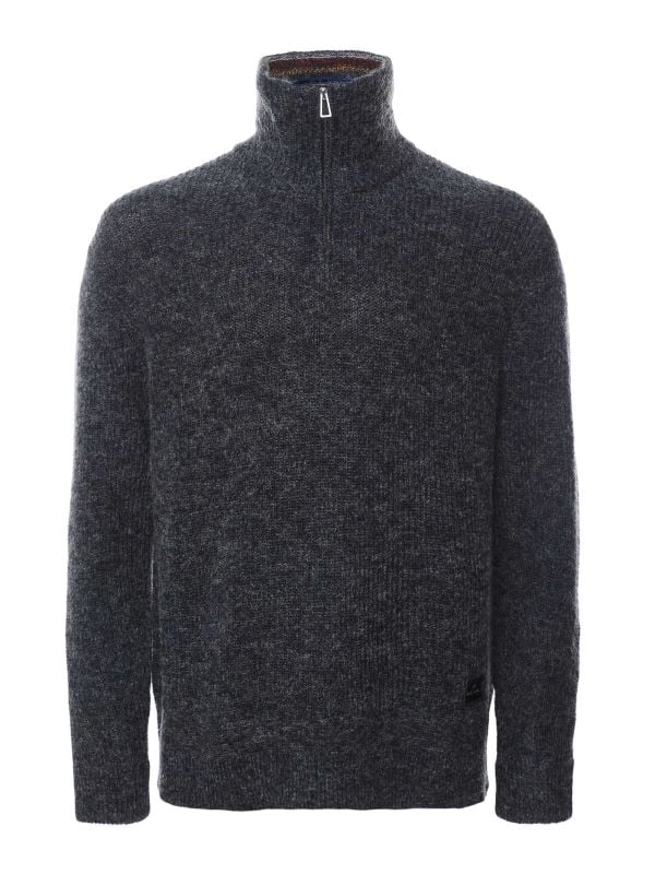 The high neck is finished with a striped inner for a signature Paul Smith touch, while the half-zip closure lets you adjust the look and feel. Long sleeves and ribbed trims complete the regular fit — the Paul Smith jumper is ideal for layering or wearing solo.