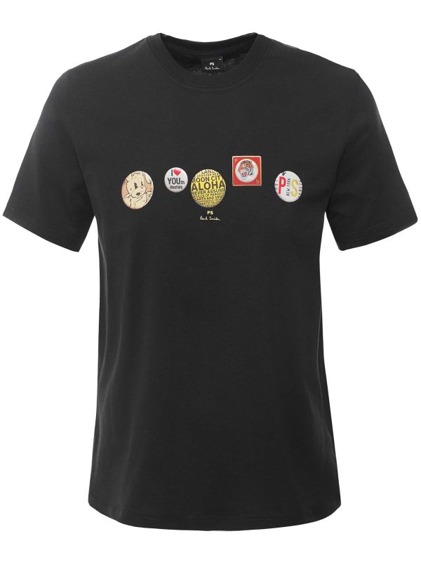 The distinctive 'Badges' graphic print adds a touch of individuality and playful charm to the garment, showcasing Paul Smith's signature creativity. Designed in a regular fit, the t-shirt effortlessly blends comfort and contemporary aesthetics, making it a versatile piece that effortlessly complements any casual ensemble while embracing ethical fashion principles.