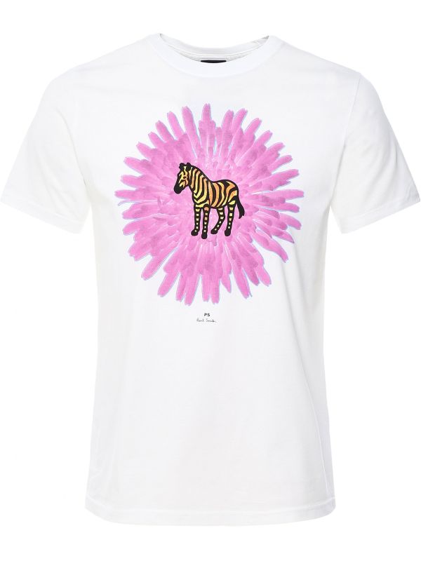 Lend your weekend looks statement impact with the PS by Paul Smith Flower & Zebra t-shirt. Considerately crafted in premium organic cotton jersey, the tee offers a super soft handle and regular fit. Featuring a traditional ribbed crew neck, whilst the playful 'Flower & Zebra' print to the chest showcases the designer's penchant towards bold design.