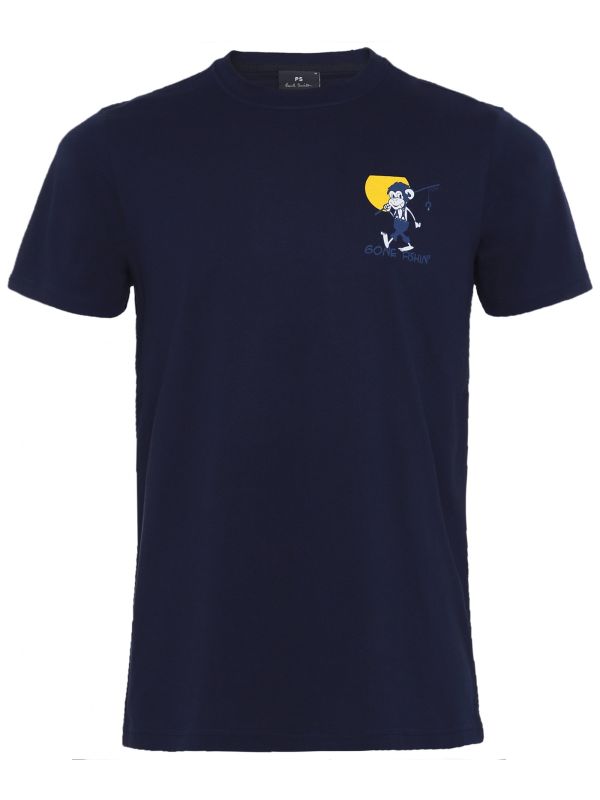 The PS by Paul Smith Gone Fishing t-shirt showcases playful charm synonymous with the British label. Considerately crafted in premium organic cotton jersey, the tee offers a super soft handle and a comfortable regular fit. Featuring a traditional ribbed crew neck, whilst the label's Monkey mascot is pictured 'Gone Fishing' to the chest and oversized print to the back.
