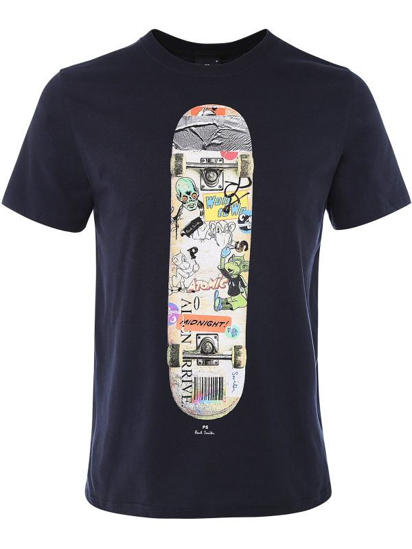 Add a playful urban edge to your casual attire with the PS by Paul Smith Skateboard t-shirt. Cut to a slim fit for an athletic silhouette, the short sleeve tee has been expertly engineered in pure organically grown cotton. Featuring a classic ribbed crew neck, whilst the Skateboard print to the chest lends signature Paul Smith impact.