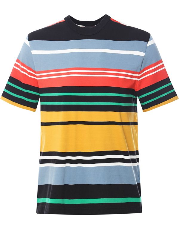 Lend your casual attire a lively vibe with the Paul Smith striped t-shirt. Cut to a regular fit, the tee has been crafted in pure organic cotton for a super soft handle. Featuring a classic crew neck and short sleeves, whilst the multi stripe design delivers statement impact.