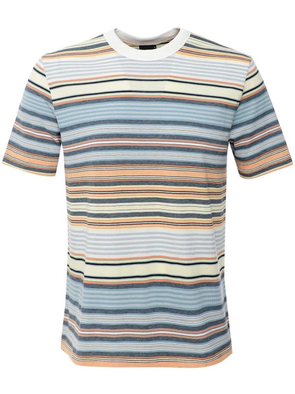 With a regular fit, the t-shirt offers a relaxed yet flattering silhouette. The use of a colourful and dynamic stripe pattern not only adds a playful touch but also makes it a versatile wardrobe staple that can effortlessly transition from casual outings to more spirited occasions. Embodying both fashion and conscientious choices, the Paul Smith striped t-shirt exemplifies a harmonious blend of style and eco-consciousness.