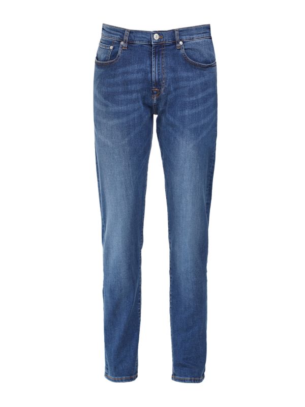 Upgrade your go-to denim with the Paul Smith Organic Reflex jeans. Cut to a tapered fit for a modern silhouette, the jeans are engineered in an organic cotton blend with stretch offering superb shape retention. Featuring a zip fly, rugged faded wash and classic five pocket design, whilst the branded waistband tab adds signature detail.
