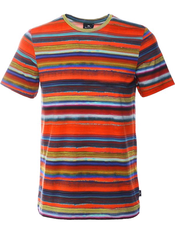 Lend statement colour to your casual outfits with the Paul Smith Painted Stripe t shirt. Engineered in pure cotton jersey, the tee has been cut to a regular shape for a comfortable fit. Featuring a classic crew neckline and short sleeves, whilst the vibrant 'Painted Stripe' pattern showcases signature PS style.