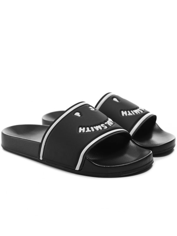 The Paul Smith Summit slides are a stylish staple to complete your summer looks. Crafted in rubber with a lightweight EVA sole, these effortless shoes feature a thick rubberised strap with contrast stripe and logo detail, complete with 'Happy' detailing for a fun finishing touch.