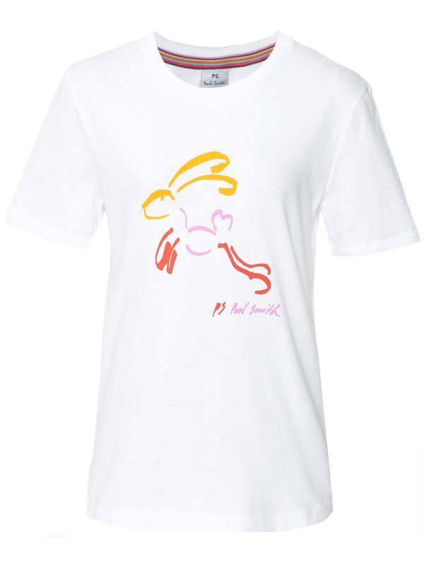 The Paul Smith Rainbow Bunny tee is a stylish staple piece to throw on with your favourite pants and sneakers. Cut from soft organically grown cotton, this white t-shirt features a classic crew neck, short sleeves and a playful print across the chest. This laid-back essential will instantly elevate your everyday wardrobe.