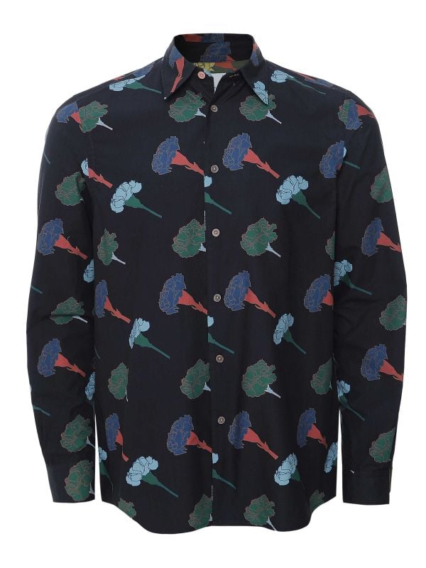 Make every outfit bloom with the Paul Smith floral shirt — crafted from a lyocell and cotton blend for a soft, breathable feel that moves with you. The pointed collar, buttoned cuffs, and shell buttons including the standout top pink button create a refined finish, while the vibrant floral print injects signature Paul Smith personality that fans love. Designed in a regular fit, the Paul Smith shirt layers effortlessly or shines on its own. Don’t wait — grab yours now to add premium quality, playful style, and standout flair to your wardrobe today.