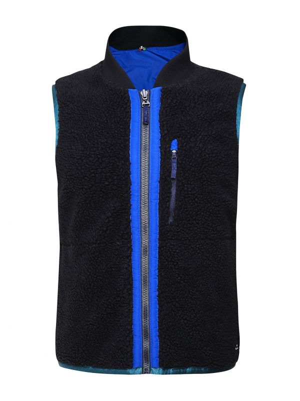 The PS by Paul Smith reversible gilet is a technical piece ideal for winter layering. Constructed with a fleece exterior and shell reverse, the gilet will ensure supreme warmth and comfort. Featuring a ribbed bomber collar, zip-through fastening and functional zippered chest pocket. Wear as a stand alone jacket during mid-season months, or layer under your coat when the chills strike.