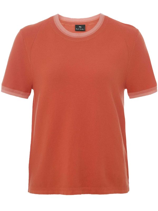 The Paul Smith Short-Sleeve Knit Top is crafted from 100% cotton for a crisp, breathable handle. It features a classic crew neck, short sleeves and raglan shoulder seams for comfortable movement. Ribbed trims at the neckline, cuffs and hem provide a neat finish while the straight hem sits cleanly over Pants or skirts. Pullover styling makes it easy to wear on its own or layered beneath blazers and jackets. Designed for everyday wear, it pairs easily with denim or tailored pieces.