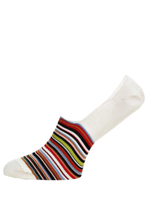 The Paul Smith loafer socks epitomise the perfect blend of style and comfort, making them an essential accessory for summer and vacation wardrobes. Crafted from a high-quality knitted cotton blend with stretch, these socks offer a snug and breathable fit that ensures maximum comfort during warm weather. The Signature Stripe detail, a hallmark of Paul Smith's design aesthetic, adds a touch of sophistication to the classic white hue.