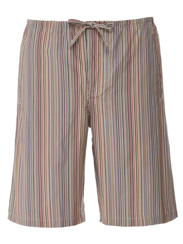 The distinctive Signature Stripe pattern, synonymous with Paul Smith's iconic designs, adds a playful and recognisable element to the loungewear. Perfectly suited for relaxed moments at home, these versatile shorts can be effortlessly styled as Paul Smith pyjama shorts or lounge shorts, making them a must-have for those seeking a blend of comfort and fashion in their leisurewear collection.