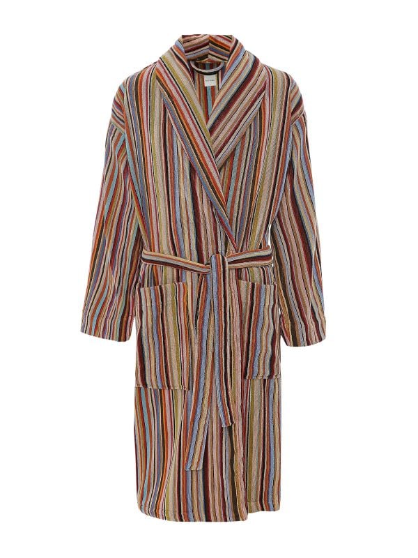 Wrap yourself in luxury with the Paul Smith Signature Stripe Robe — crafted from soft cotton towelling for ultimate comfort and absorbency after a shower or a relaxing morning. The shawl collar, waist belt, and patch pockets combine style and practicality, while the iconic Signature Stripe pattern adds a touch of Paul Smith personality that customers rave about. Designed in a regular fit, it’s easy to layer over sleepwear or lounge in at home, making every moment feel effortlessly elevated. If you’re ready to upgrade your loungewear with comfort, style, and a pop of signature detail, grab this Paul Smith Robe today before it sells out.
