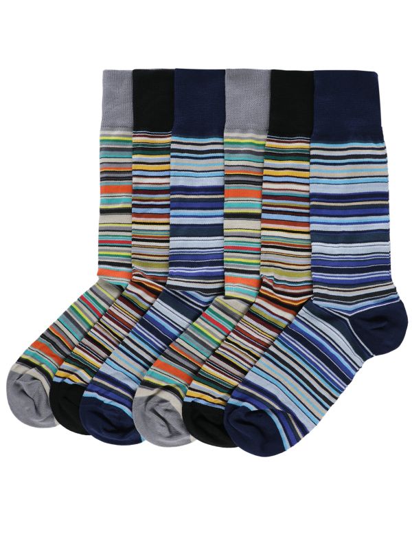 The Paul Smith Signature Stripe socks 6 pack is a must-have for those who appreciate both comfort and style. Made from a cotton blend with just the right amount of stretch, these socks offer a snug, breathable fit that lasts all day.