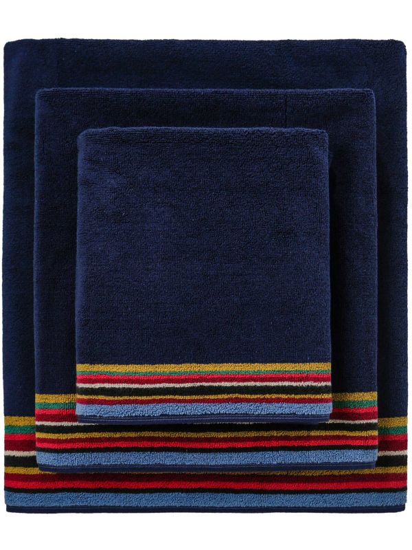Each towel is adorned with the iconic Signature Stripe trim, adding a touch of elegance and style to your bathroom décor. Whether you're stepping out of the shower or lounging by the pool, the Paul Smith towel set promises both practicality and sophistication.