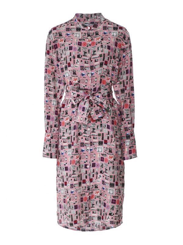 Make a statement this season in the Paul Smith postcard dress. Skilfully crafted in the finest silk, this bold shirt dress features a button down fastening, long sleeves and an eclectic all-over 'postcard' print for a unique finish. The dress is complete with a chic tie neck detail and can easily be dressed up or down for a stylish look.