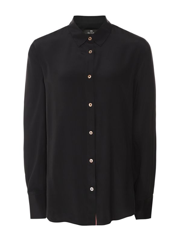 This Paul Smith shirt is a versatile staple piece to style with jeans or tailored trousers for an elegant, everyday look. Made in Portugal from a soft silk-blend, this black long-sleeve shirt features a pointed collar, button fastening, and a placket with Paul Smith's classic "Swirl" pattern.