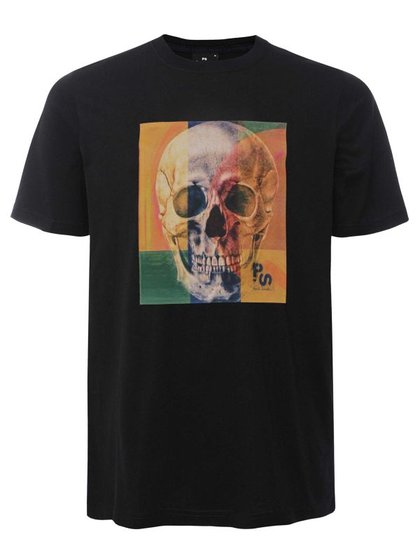 The standout feature is the bold 'Square Skull' graphic print—a playful yet edgy design that commands attention. Its regular fit ensures the Paul Smith t-shirt is as comfortable as it is versatile, making it perfect for layering or rocking solo. This is more than just a tee; it’s a statement piece for the modern wardrobe.