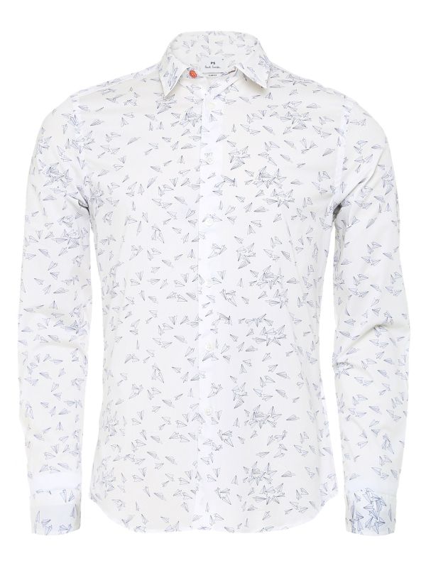 The PS by Paul Smith paper plane shirt is set to give your looks unique charm this season. Expertly cut to a slim fit and crafted in premium cotton with stretch, the shirt offers a contoured silhouette without compromising on comfort. Featuring a pointed collar, buttoned cuffs and sleek French placket, whilst the paper plane print makes for a characterful appearance. The Paul Smith shirt is complete with iridescent mother-of-pearl buttons for a luxurious finishing touch.