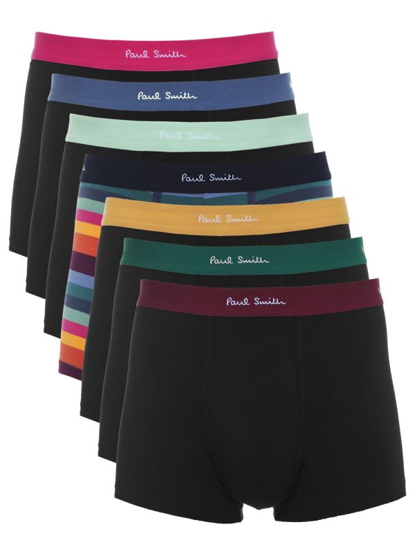 The Paul Smith trunks gift pack solves your weekly underwear choices in an instant! Engineered in a super soft stretch cotton, the set of seven boxer shorts feature bold branded waistbands that showcase a signature pop of colour synonymous with the British designer.