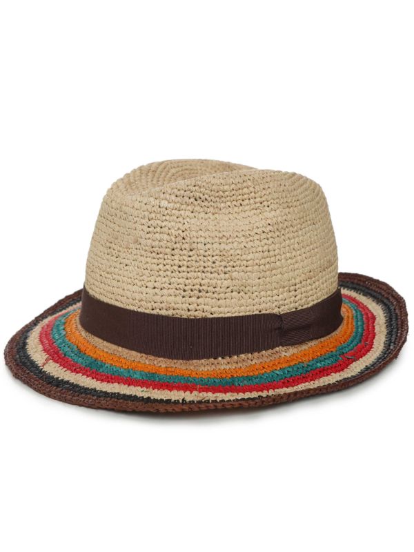 The striped brim adds a bold yet refined touch, while the grosgrain headband brings a polished finish. Whether you're dressing up for a summer event or keeping it casual on vacation, this Paul Smith hat delivers timeless style with a signature twist.