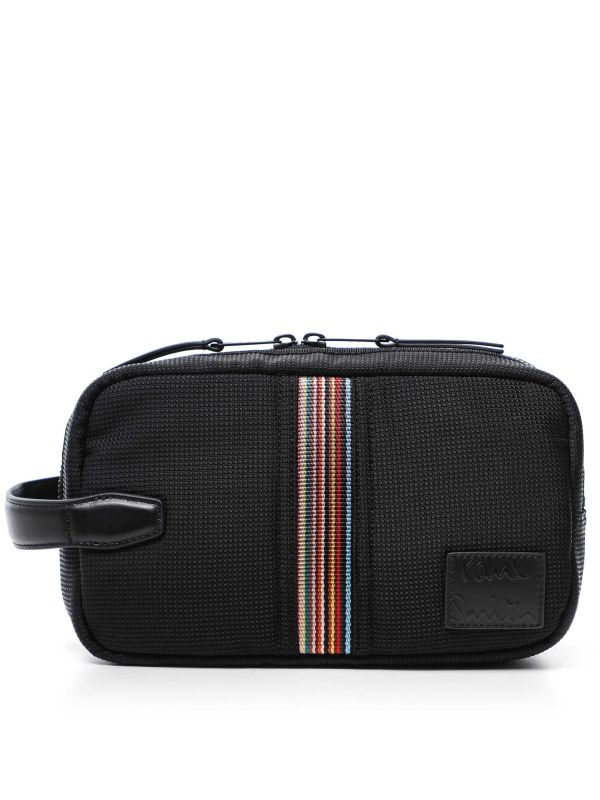 Upgrade your grooming routine with the Paul Smith stripe trim wash bag, designed to combine style and functionality. Made from durable textured fabric with leather accents, this Paul Smith wash bag features a robust dual zip closure that keeps all your essentials secure.