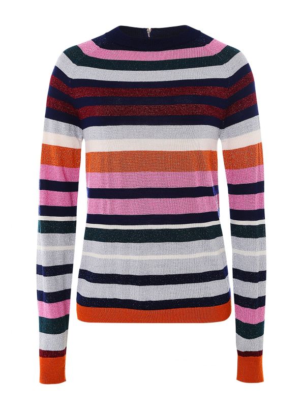 Incorporate an effortless style into your seasonal wardrobe with the Paul Smith sweater. Beautifully crafted from a wool blend, the sweater features a zip opening at the back, long sleeves, and ribbed trims. Finished with a glitter stripe pattern throughout, this sweater will add a delicately feminine touch to your outfit.