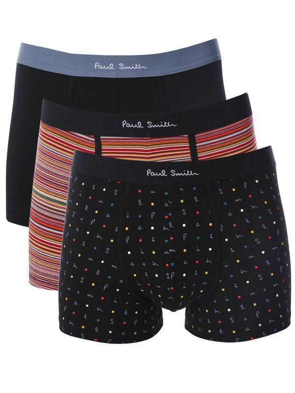 The Paul Smith boxer briefs 3 pack offers a stylish and comfortable addition to any wardrobe, featuring high-quality organic cotton with added stretch for a snug yet flexible fit. This set includes three distinct designs: one plain pair, one striped pair, and one with a playful letters pattern, ensuring a versatile selection for different tastes and occasions.