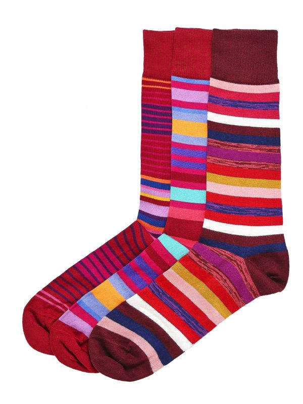Brighten up your essentials with the Paul Smith three pack of striped socks. Crafted in England from a super soft cotton blend, the designer socks comprise of three pairs in Paul Smith's signature striped patterns. The Paul Smith socks come with a branded presentation box making them an ideal gift for a loved one this season.