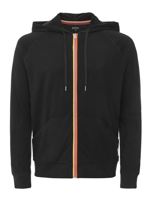 The Paul Smith striped trim hoodie is a versatile piece of leisurewear ideal for downtime. Engineered in a super lightweight cotton, the hoodie offers a soft handle and optimum comfort. Featuring a drawstring hood, zip placket and split kangaroo pocket, with the raglan sleeve cut making for exceptional freedom of movement.