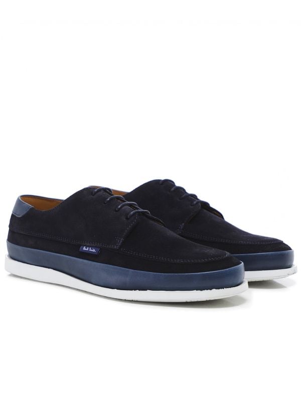 The PS by Paul Smith Broc shoes are a super versatile option that can be easily paired with casual or smart attire alike. Expertly engineered with buttersoft suede uppers, the navy shoes feature a cemented construction for superb durability, whilst the cushioned leather footbeds provide unrivalled day-long comfort. Featuring a lace-up fastening and moccasin toe, with the tonal leather foxing providing signature Paul Smith detail.