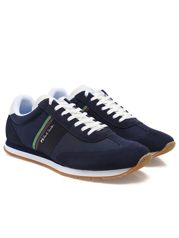 The PS by Paul Smith Prince sneakers are packed with synonymous sports shoe detail. Engineered in a lightweight nylon, the navy sneakers are detailed with soft suede trims and a bonded toe for a dynamic sporty aesthetic. Featuring a lace-up fastening and branded tongue, whilst the cushioned footbeds make for unbeatable comfort with every step. The Paul Smith sneakers are complete with the label's 'Sports Stripe' webbing offering an iconic finish.
