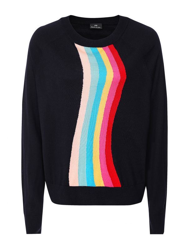 Add a pop of colour to your off-duty wardrobe with the Paul Smith Swirl sweater. Made from 100% wool, this dark navy crew neck sweater features a classic round neckline and a central 'Swirl' intarsia pattern. This laid-back Paul Smith knit is finished with ribbed trims for a comfortable fit.