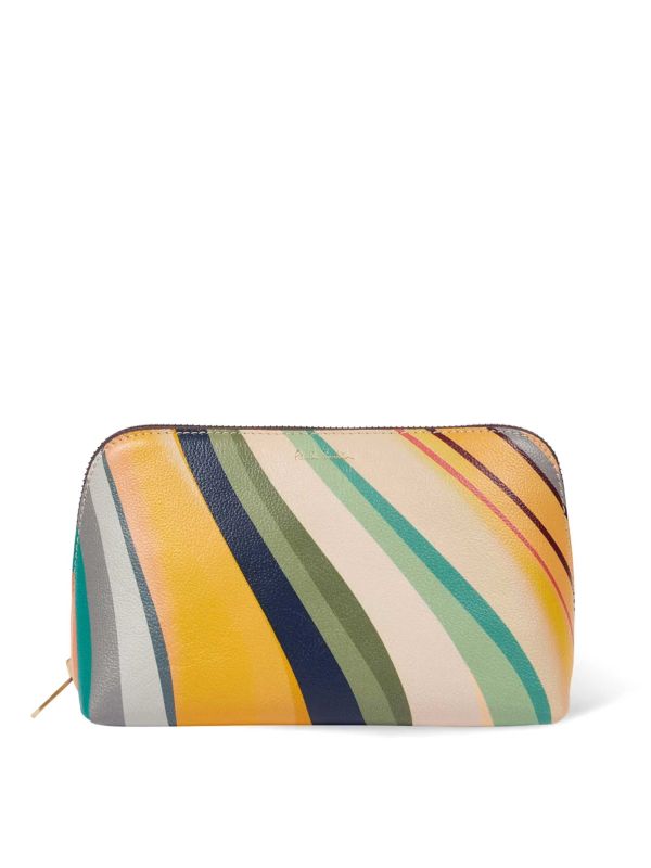 The Swirl Leather Pouch is a compact accessory from Paul Smith rendered in the brand's distinctive printed swirl. The pouch has a Zipper-top fastening with a branded metal pull, a lined interior with a slip pocket and a shaped base for structure. Ideal for organising essentials within a larger bag or for standalone use, the design pairs a bold printed exterior with considered practical detailing for everyday portability.