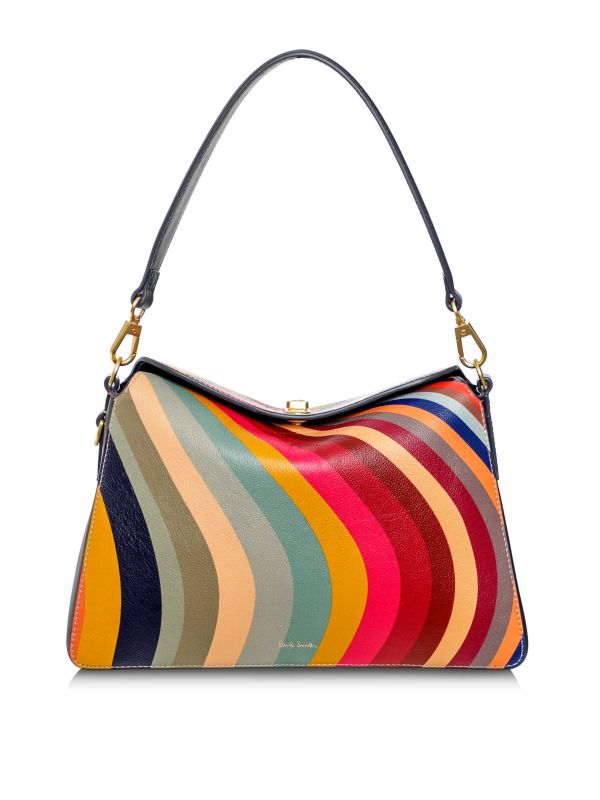 This Paul Smith shoulder bag has the wow factor thanks to its colourful stripes, a signature feature of the brand's 'Swirl' collection. The bag features a single shoulder strap, golden hardware, turn-lock closure and an internal pocket with a zip. The Paul Smith logo features at the bottom centre.