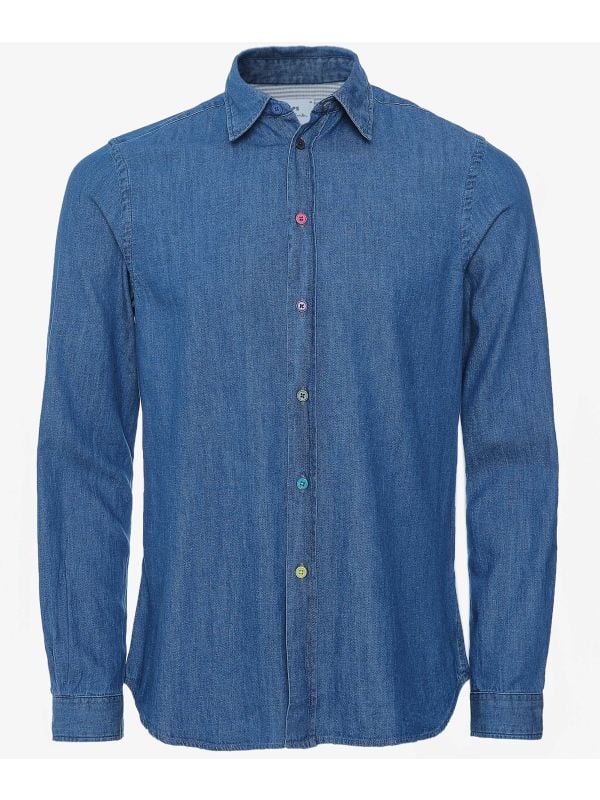 Upgrade your wardrobe with the Paul Smith denim shirt — crafted from organic cotton denim for soft, durable comfort that lasts all day. The pointed collar, long sleeves, and buttoned cuffs deliver classic, polished tailoring, while the multi-coloured buttons inject signature PS personality. Designed in a tailored fit, this Paul Smith shirt offers a sharp, modern silhouette that works perfectly for work, weekends, or layering over your favourite tees. Loved by fans for its quality, versatility, and standout detailing, it’s a wardrobe essential you won’t want to miss. Grab yours today and enjoy timeless style, premium craftsmanship, and effortless sophistication.
