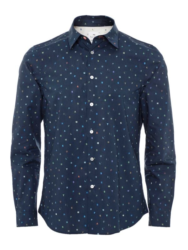 Long sleeves with buttoned cuffs keep the look smart, while the multicoloured ‘Paul Smith’ letters add a bold contrast that brings character to the clean silhouette. The Paul Smith shirt is a fresh choice for smart-casual styling with personality.