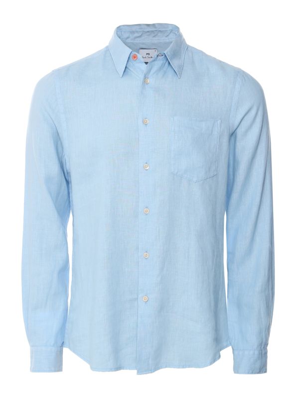 The Paul Smith linen shirt will effortlessly take you from day-to-night. Cut to a tailored fit for a flattering silhouette, the shirt has been crafted in pure linen for essential cooling qualities. Featuring a sharp pointed collar, patch pocket and buttoned cuffs, whilst the top pink button lends signature PS detail.