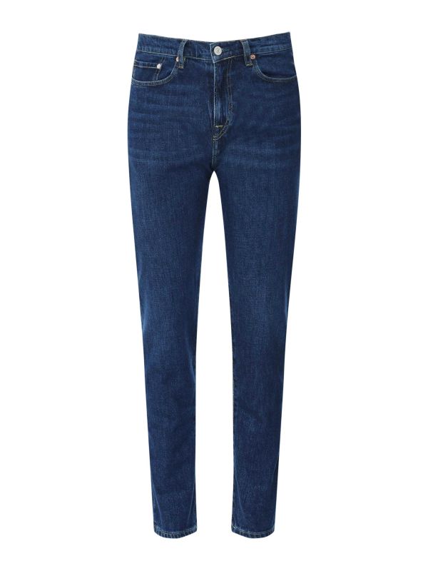 The zip fly, coupled with sturdy belt loops, ensures a secure and classic fit, while the five-pocket design offers practicality without sacrificing style. Branded metal hardware and a distinctive waistband tab add a touch of refined detail, highlighting the brand's commitment to quality. The dark wash denim finish exudes a sleek vibe, perfect for both casual and upscale settings.