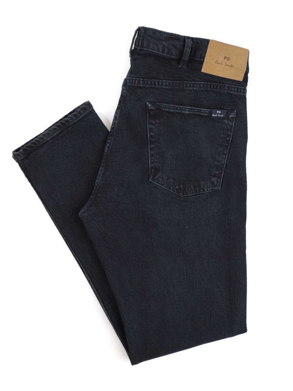 The Paul Smith Tapered Fit Jeans offer a contemporary tapered leg for a cleaner profile. Cut in denim with a five-pocket construction, they show metal rivet detailing, belt loops and a leather waistband patch stamped PS Paul Smith. A signature multi-stripe stitch across the rear pocket and a small branded tab add recognisable Paul Smith character. Pair with shirts or knitwear for versatile day-to-night dressing and a smart-casual finish.