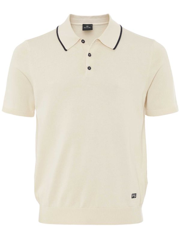 The Tipped Collar Polo Shirt by Paul Smith is a short-sleeve, three-button knit polo with a contrast-tipped collar, ribbed hem and cuffs, plus a small PS logo patch at the waist. Its knitted construction gives a smooth, lightweight hand and a neat silhouette that layers easily under blazers or stands alone for a tidy weekend look. Designed to balance structure and comfort, it moves between smarter and more casual outfits with ease.