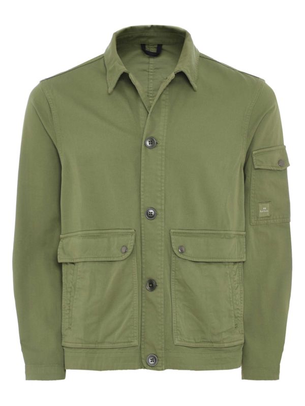 The Paul Smith Utility Overshirt is a smartly detailed overshirt designed for practical layering. It features a pointed collar, a button-through front and twin flap pockets with popper closures over side-entry hand pockets. A utility pocket sits on the sleeve with a small logo patch, while understated buttons and neat topstitching give it purposeful character. Long sleeves and a straight hem make it easy to wear over shirts or knitwear, offering considered proportions and functional detailing for contemporary menswear.