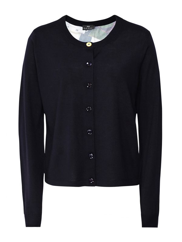 This PS by Paul Smith wool cardigan is an elegant piece of knitwear, perfect for styling with your favourite denim, pants and skirts. Crafted in 100% wool for a luxuriously soft handle, this beautiful cardigan features a button down fastening and a contrast viscose back panel with all-over 'Explorer' print. The cardigan is complete with rib-knit trims and a contrast top button for a quirky finishing touch.