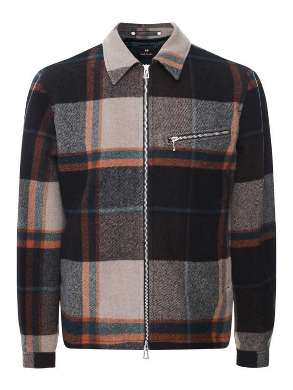 Designed with a slanted zip chest pocket and practical side pockets, it seamlessly integrates style with utility. The standout feature, a distinctive plaid check pattern, infuses a burst of heritage flair into a timeless design. This Paul Smith jacket is the ideal choice for those who demand both elegance and practicality in their wardrobe.