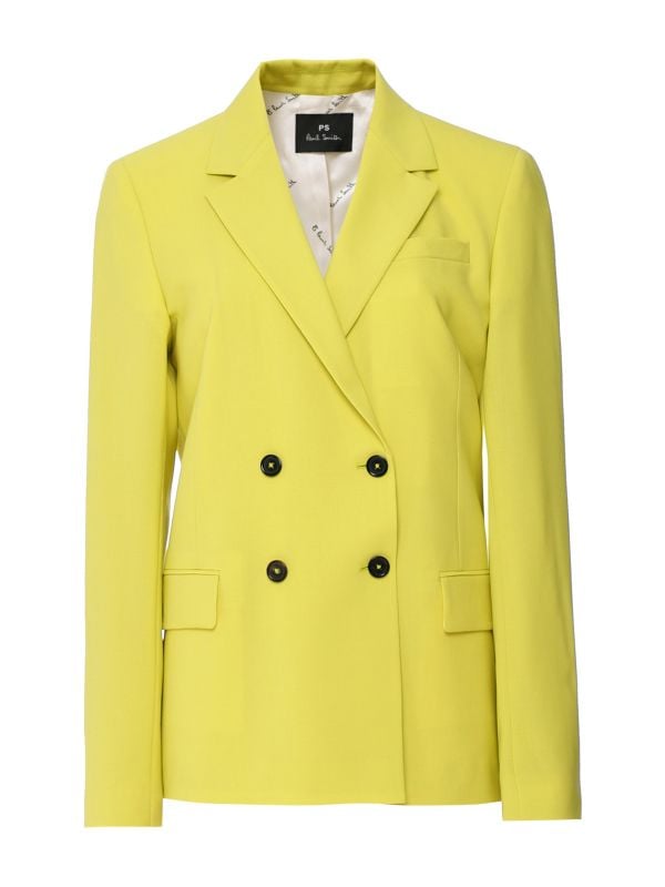 This Paul Smith blazer will add a splash of colour to your office wear. Crafted with 100% wool featuring a double-breasted design with two flap pockets, this unique colourway will brighten your wardrobe. Pair this with Paul Smith's matching pants for an elegant look.