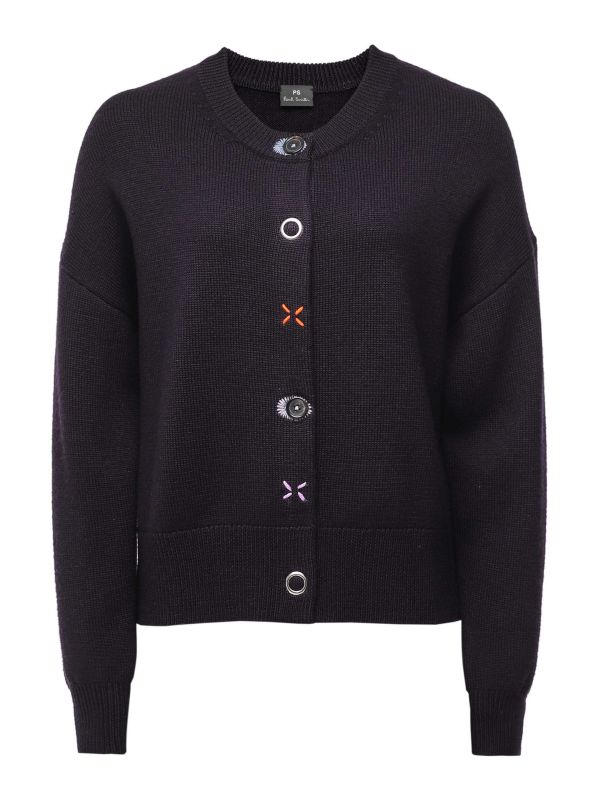 The Paul Smith mixed buttons cardigan is made from 100% soft wool and features mixed, embroidered buttonholes down the placket for a dose of quirky style. This luxe knit features dropped shoulders and ribbed trims for a relaxed finish.