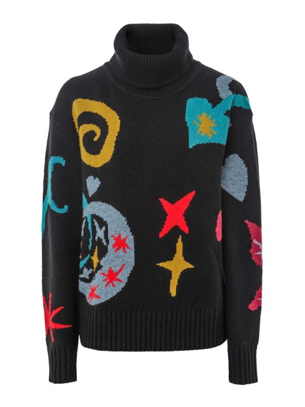 The ribbed trims at the cuffs and hem add a refined finish to the design, ensuring a snug fit. What truly sets this women's Paul Smith jumper apart are the vibrant multi-coloured intarsia motifs, which bring a playful yet elegant flair, making it a standout piece for cooler days.