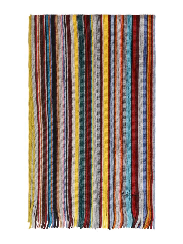 The tasselled edges add a touch of flair, giving it a modern twist that keeps things fun and fresh. Whether you're wrapping it around your neck for a chilly day or draping it over your shoulders for a chic look, this Paul Smith scarf is a statement piece that reflects Paul Smith's signature blend of tradition and contemporary flair.
